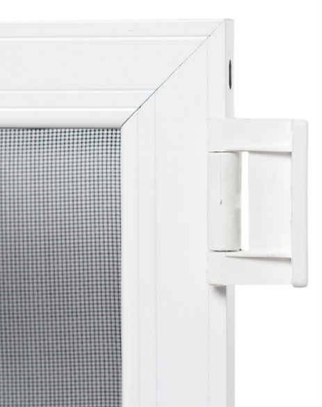 Moskitiery drzwiowe z ościeżnicą (Jaro-Wing z własną ramką) charakteryzują się solidną ramką, która zapewnia stabilność i wygodę użytkowania, a ich biały kolor ułatwia dopasowanie do różnych aranżacji drzwi.